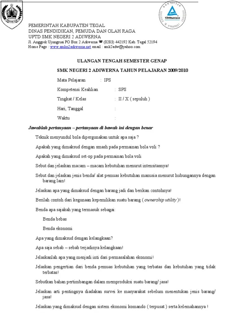 Kumpulan soal dan jawaban ekonomi kelas x semester 2 sesuai .