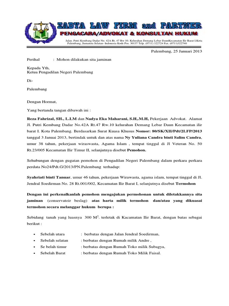 Contoh Surat Permohonan Sita Eksekusi Pdf : Layanan Kepaniteraan Perdata - Surat permohonan aanmaning/eksekusi putusan serta merta berisi:.